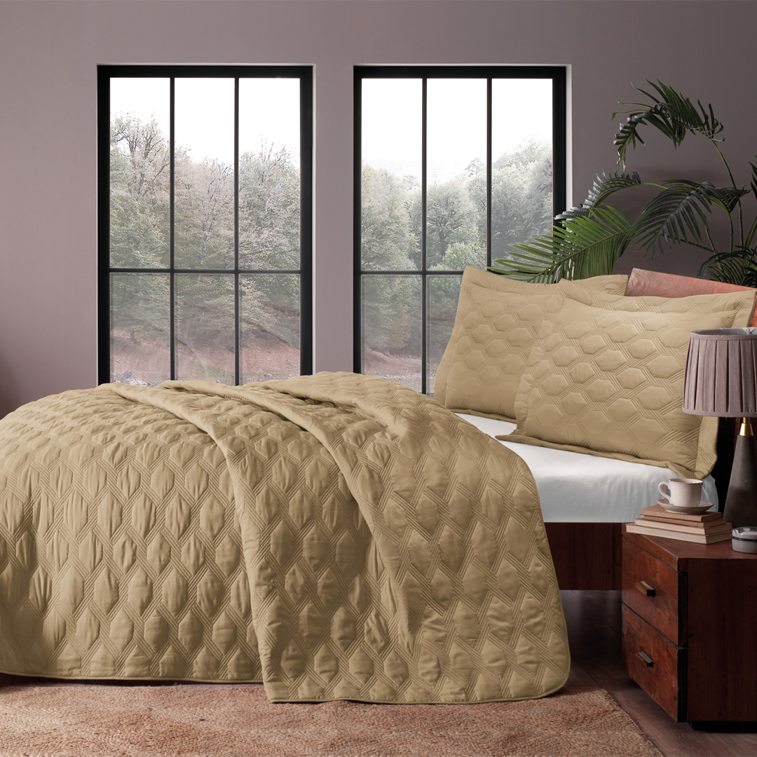 Her yatak örtüsü seti, yatak örtüsü ve yastık kılıfından oluşan tamamlayıcı bir takım olarak sunulmaktadır. Dilerseniz bu parçaları tek tek satın alarak kendi tarzınıza uygun kombinler oluşturabilirsiniz. Kapitone veya lazer baskı seçenekleriyle sunulan ürünlerin iç ve dış dolgusu %100 polyesterden üretilmiştir.